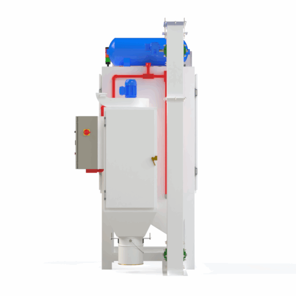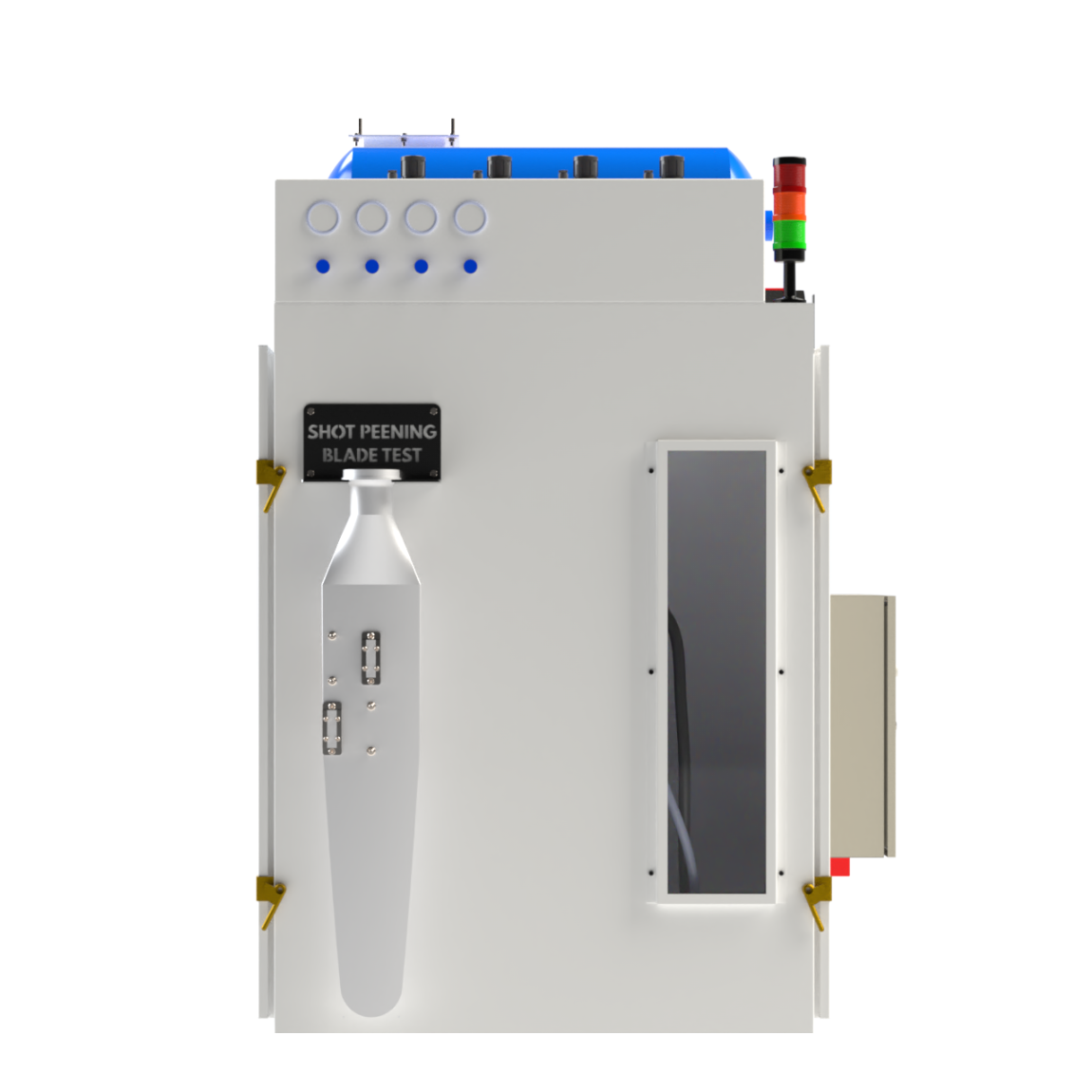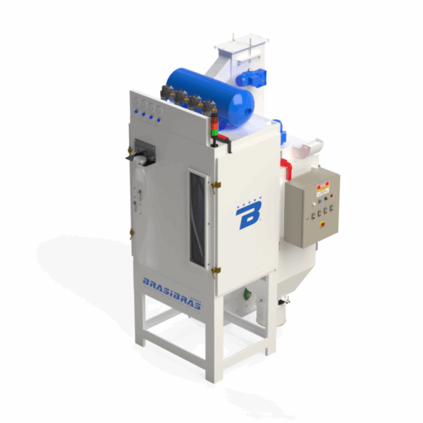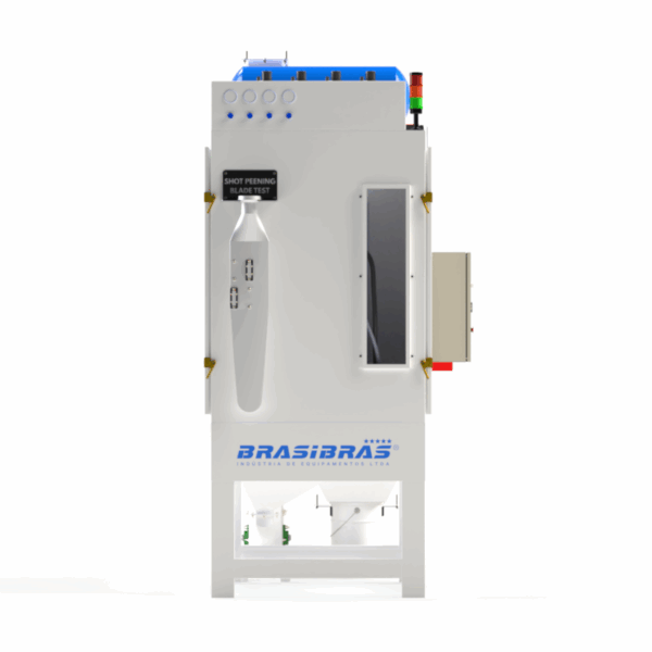 O equipamento de Shot Peening para a superfície das hélices da marca HARTZELL, inclui: